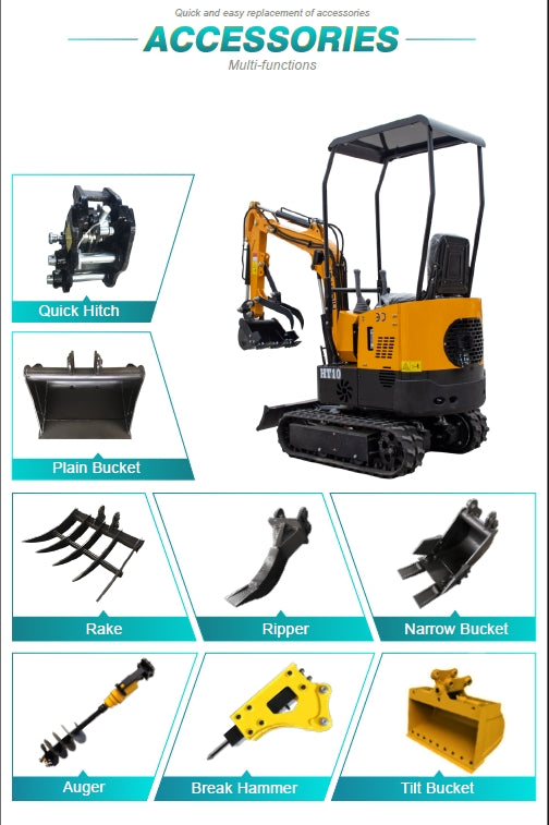 The Multi Function 1 Ton Mini Excavator - HT10 is perfect for hobbyists and recreational users seeking to complete DIY projects. This versatile machine handles various tasks with ease, providing powerful digging and lifting capabilities without the bulk of larger equipment. Its lightweight frame ensures easy transport and manoeuvrability, making it ideal for small-scale projects and personal use. Experience convenience and efficiency with the HT10, designed to bring professional-grade functionality to your backyard or hobby site.